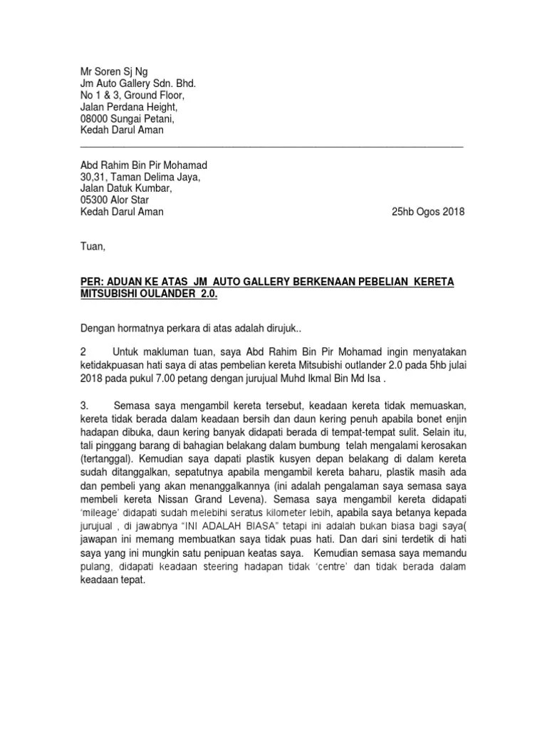 Contoh Surat Aduan Tidak Puas Hati 1 Pdf Penyataan Surat Pembelaan 15 September 2019 Wnk Innovation Trading Lot 7868 Jalan Jaya Kg Course Hero