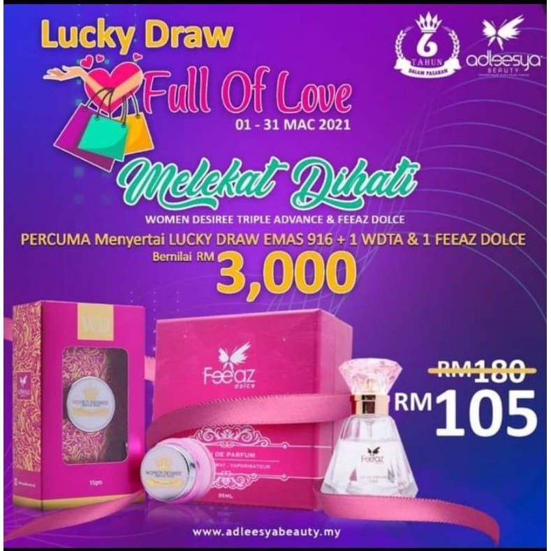 Women Desiree Triple Advance atau dikenali dengan WDTA ialah Krim Kecantikan revolusi Bio Teknologi Nano yang membantu untuk Mencerahkan. Produk Kami -Retail Set Kombo Lip Matte Merchandise -Anniversary Box Bunting Flyers Modul. POSLAJU ADD RM 5 SABAH SARAWAK.